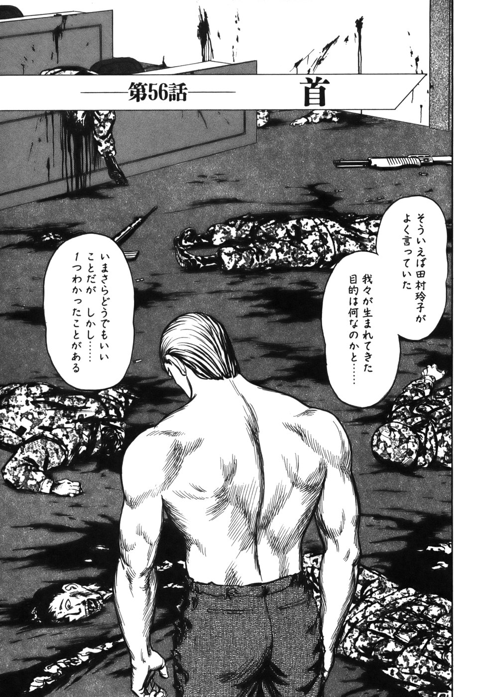Dying, Yamagishi asks what Gotou is. Gotou tells him he's just a wild animal. The soldier then considers that he should have tried bringing a flamethrower.